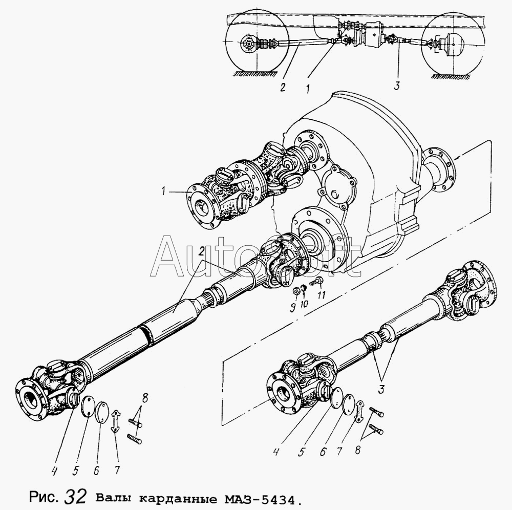 МАЗ | МАЗ-5432 (2003) | 5434-2203010-10 | Карданный вал в сборе привода среднего моста | Установка карданных валов | |