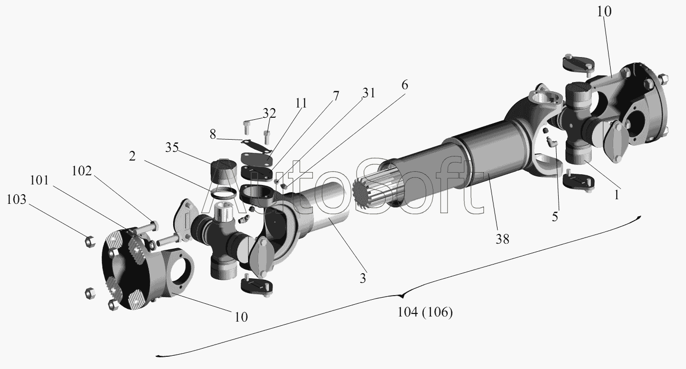 МАЗ | МАЗ-6422, 5432 (2007) | 54401-2205013-010 | Вал карданный, входит в карданный вал 54401-2201010-010 | Установка карданного вала |