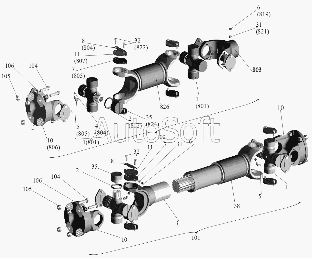 | МАЗ | МАЗ-6303A3, 6303A5 (2007) | 630305-2218010 | Карданный вал в сборе привода ЦРОМ | Установка карданных валов |