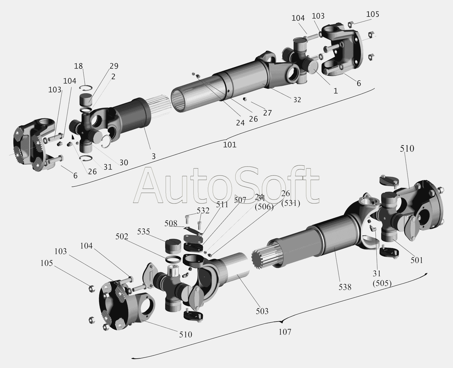 | МАЗ | МАЗ-543202 (2003) | 64226-2201010-02 | Карданный вал в сборе привода заднего моста | Установка карданных валов | |