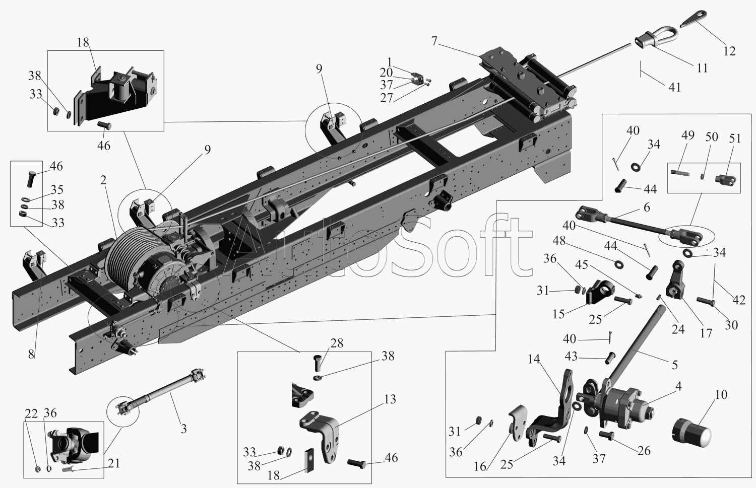 | МАЗ | МАЗ-6317 | 6317-4502010 | Вал карданный | Установка привода лебедки |