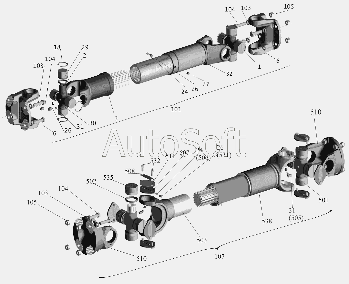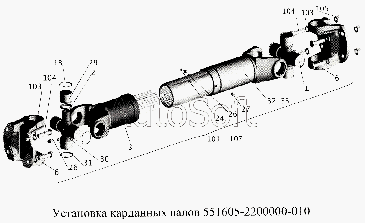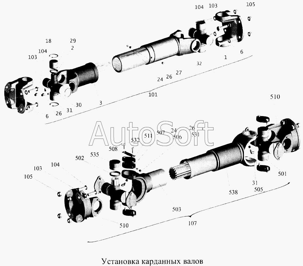 | МАЗ | МАЗ-6303A3, 6303A5 (2007) | 64226-2205010-02 | Карданный вал в сборе привода заднего моста | Установка карданных валов |