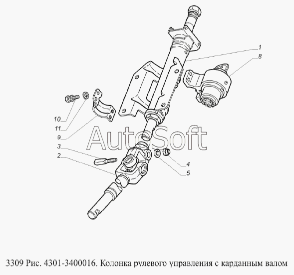 | ГАЗ | ГАЗ-3309 (Евро 2) (2008) | 4301-3401205 | Вал карданный средний в сборе | Колонка рулевого управления с карданным валом |