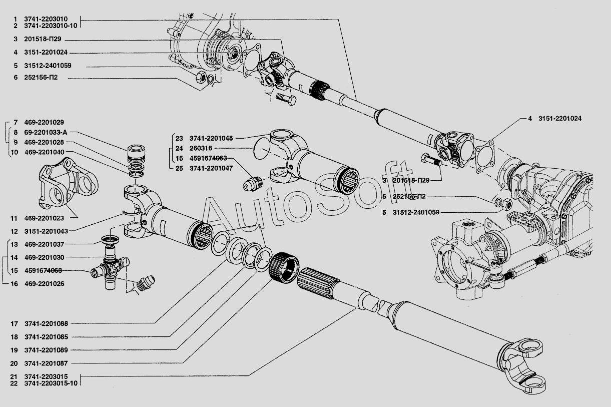 | УАЗ | УАЗ-3741 | 69-2203010-05 | Вал карданный заднего моста | Вал карданный заднего моста |