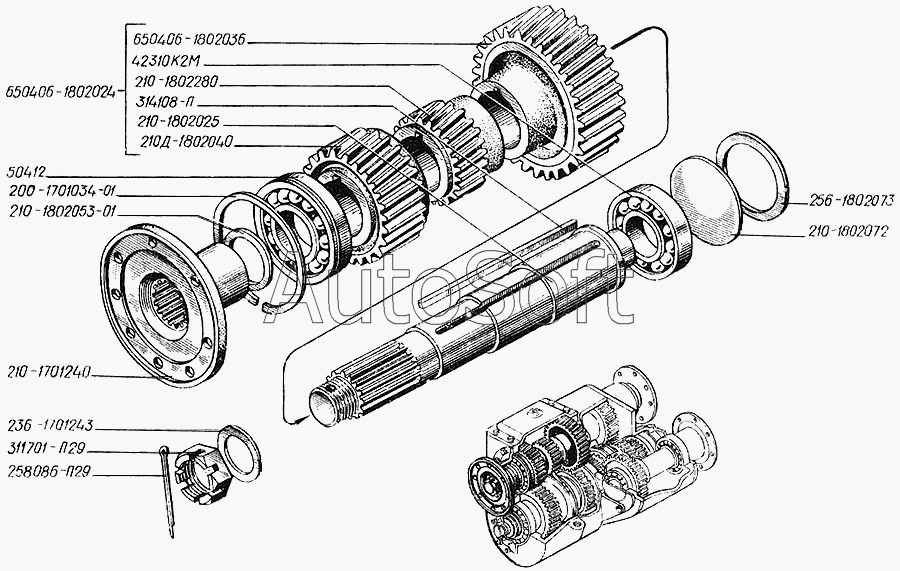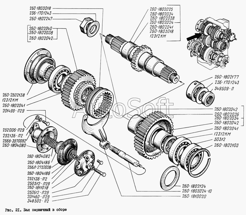 Вал первичный 66-40-1802025 производства RSTA (РФ), Код для заказа: 00-ГР016742