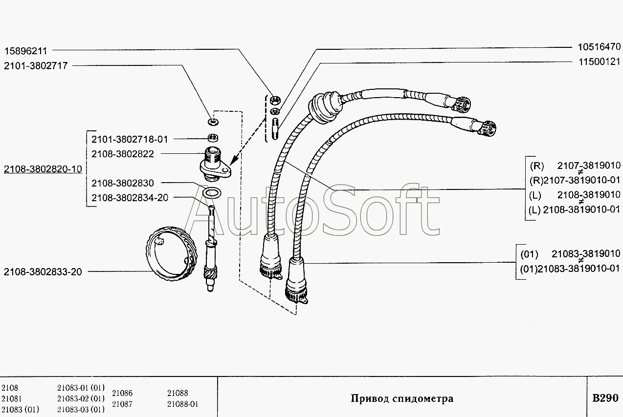 | ВАЗ | ВАЗ-2109 (2002) | 21083-3819010 | Вал привода спидометра | Привод спидометра |