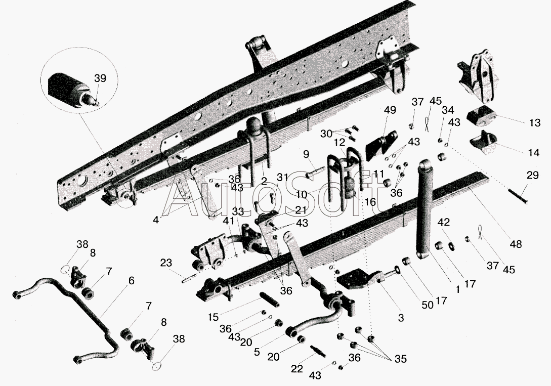 | Стремянка рессоры задней 5516-2912408-010 У (L=430мм, гайка М30) МАЗ | |