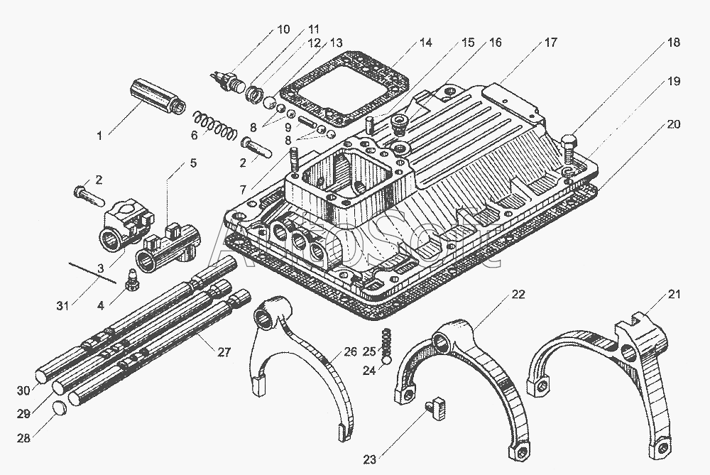 | ЯМЗ | ЯМЗ-6561.10 (Евро 3) (2007) | 239.1702033 | Вилка переключения 4-ой и 5-ой передач | Механизм переключения коробки передач ЯМЗ-239.17-22 |