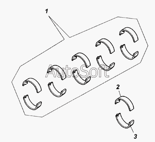 Вкладыш коренной 7405.1005170 верхний комплект производства КАМАЗ (РФ), Код для заказа: 00-ГР017597