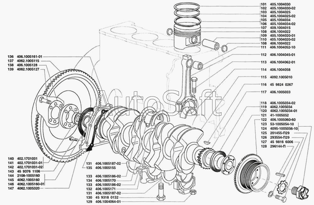 | УАЗ | УАЗ-31519 (2005) | 406.1000102 | Комплект вкладышей коренных подшипников диам. 62,00 мм | Поршень и шатун, вал коленчатый и маховик |