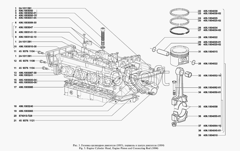 УАЗ | УАЗ-31519 (2005) | 406.1000104 | Комплект шатунных вкладышей диам. 56,00 мм | Поршень и шатун, вал коленчатый и маховик | |