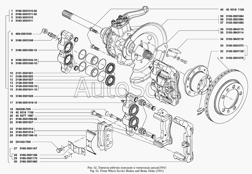 | УАЗ | УАЗ-31519 (2007) | 3160-3501027 | Втулка компенсирующая переднего тормоза | Тормоза рабочие передние |