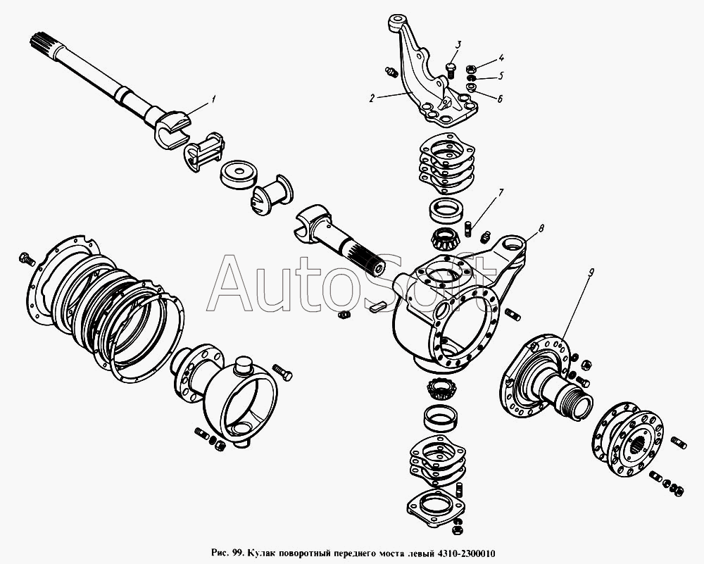 Камский автозавод | 43101 | 5320-2403072 | Втулка разжимная шпильки полуоси | Кулак поворотный правый моста переднего 4310-2300010 |