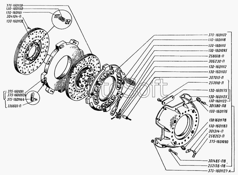 УралАЗ | УРАЛ-375 | 304104-П | Заклепка 4х6 | Сцепление (Рис. 38) | |