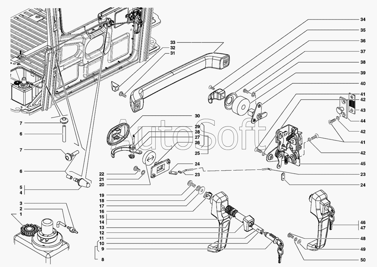 УАЗ | УАЗ-31519 (2007) | 3151-6105011 | Замок передней двери левый | Замок и ручки двери задка, омыватель стекла двери задка |