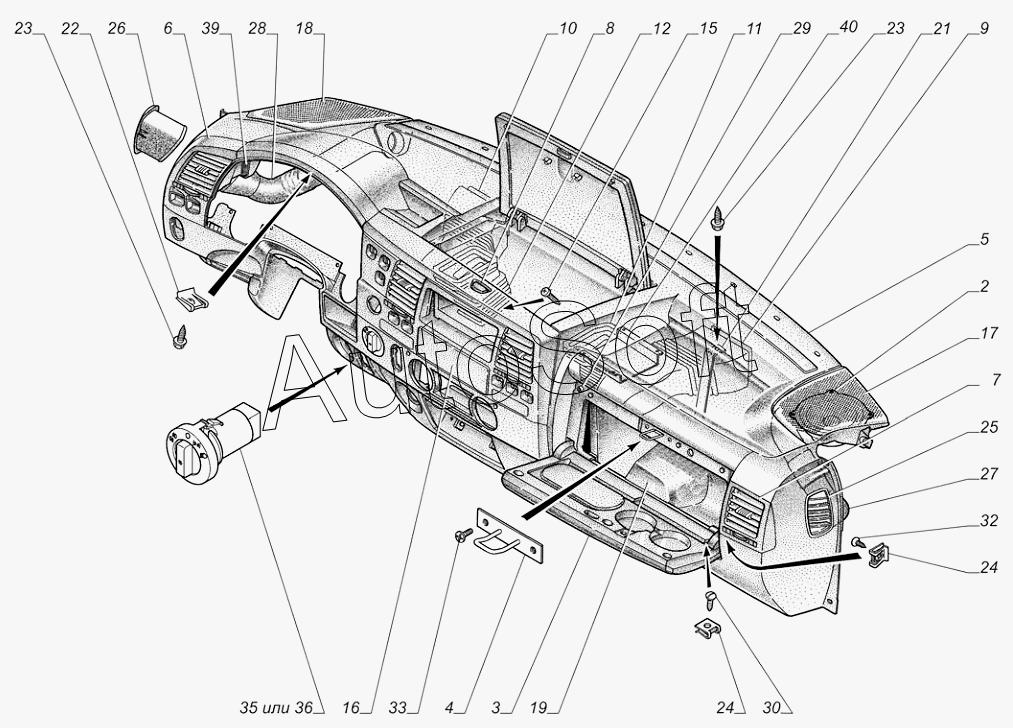 | ГАЗ | ГАЗ-33104 Валдай (2006) | 3310-8213080 | Замок | Панель приборов | |