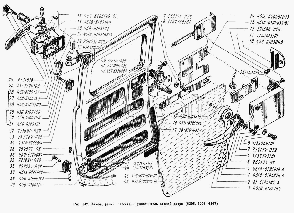 УАЗ | УАЗ 3741 (каталог 2002 г.) (2002) | 451А-6205012-13 | Замок двери в сборе | Замок, ручки, навеска и уплотнитель задней двери |