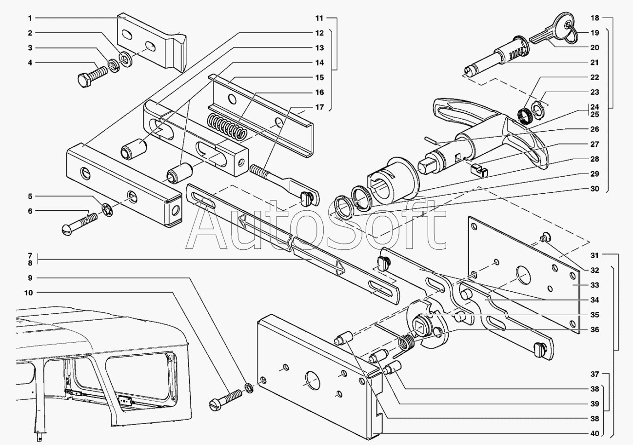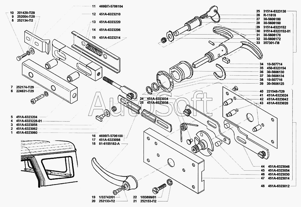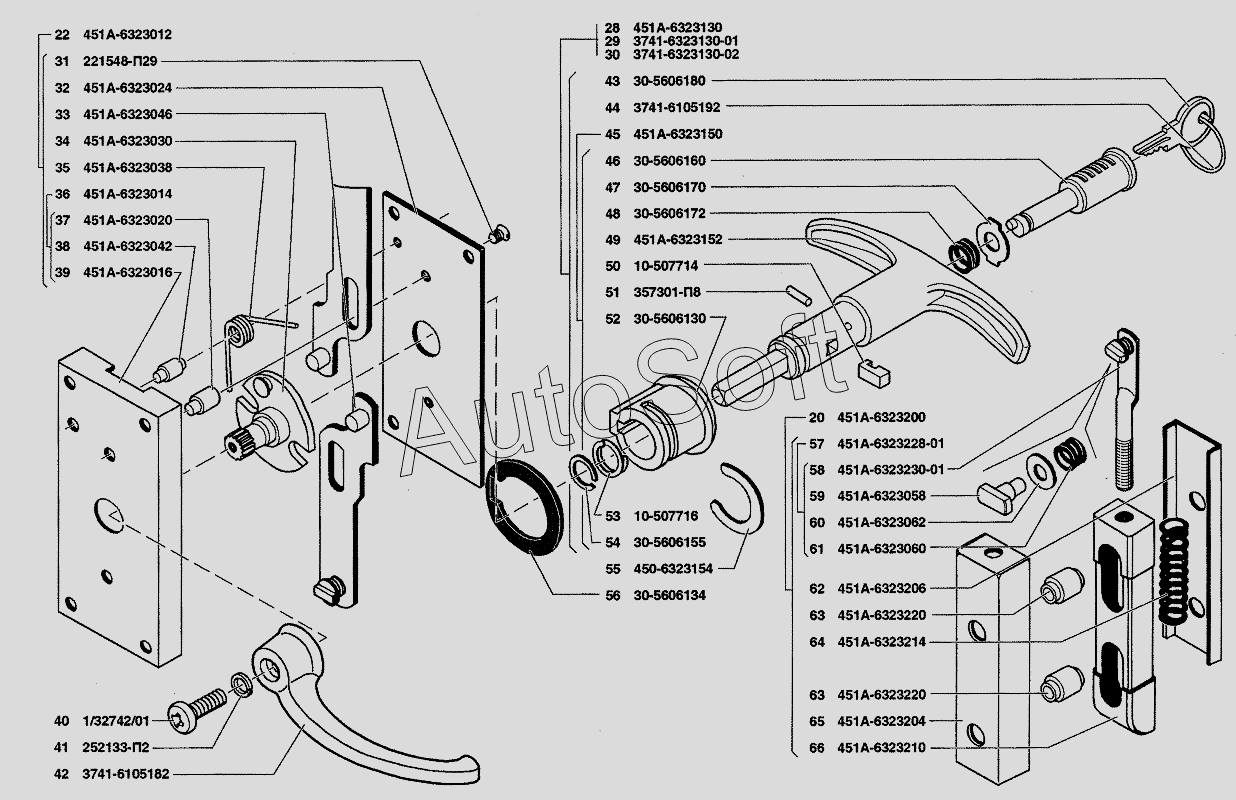 Замок 451А-6323012 двери производства УАЗ (РФ), Код для заказа: 24531