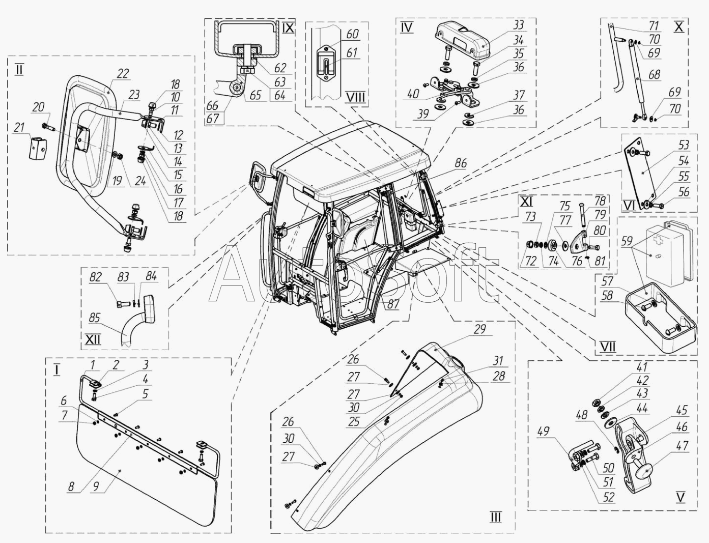 | Стекло боковое с отверстием 868х779 | |
