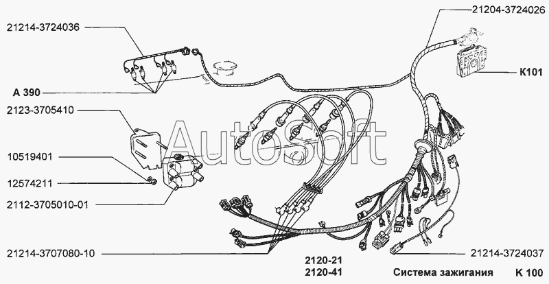 | ВАЗ | ВАЗ-21213-214i (NIVA) (2005) | 21214-3724036 | Жгут проводов форсунок | Система зажигания (Rus+B) |